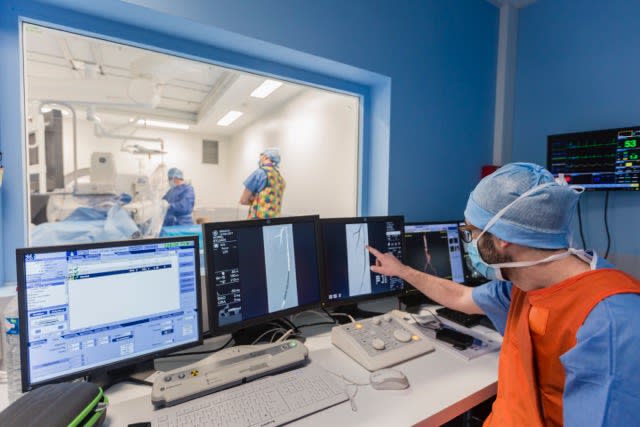 Les interventions sont réalisées au sein d'un bloc ultra moderne de dernière génération : une Salle Hybride. Cette salle, unique en Basse Normandie, permet de fusionner les images du scanner pré-opératoire aux données per opératoire grâce à un robot d'imagerie qui permet de limiter l'irradiation et l'utilisation de produits néphrotoxiques mais surtout de réaliser des gestes plus complexes.